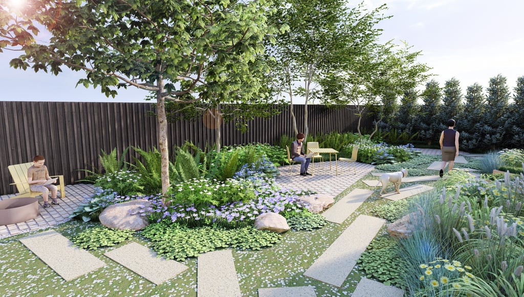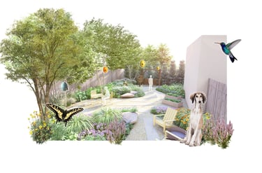The homeowners, a couple with a deep love and respect for nature, share their home with three lively dogs. Their connection to the natural world moved us deeply and became the source of inspiration for this garden.